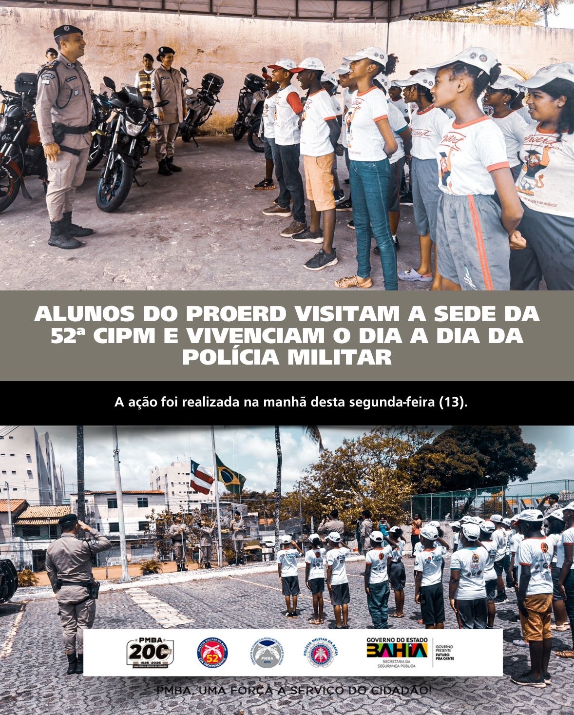 Em comemoração à Semana da Criança, alunos do Programa Educacional de Resistência às Drogas e à Violência (PROERD) da Escola Municipal Vila Nova de Portão participaram, na manhã desta segunda-feira (13), de uma visita especial à sede da 52ª Companhia Independente de Polícia Militar (CIPM), em Lauro de Freitas.