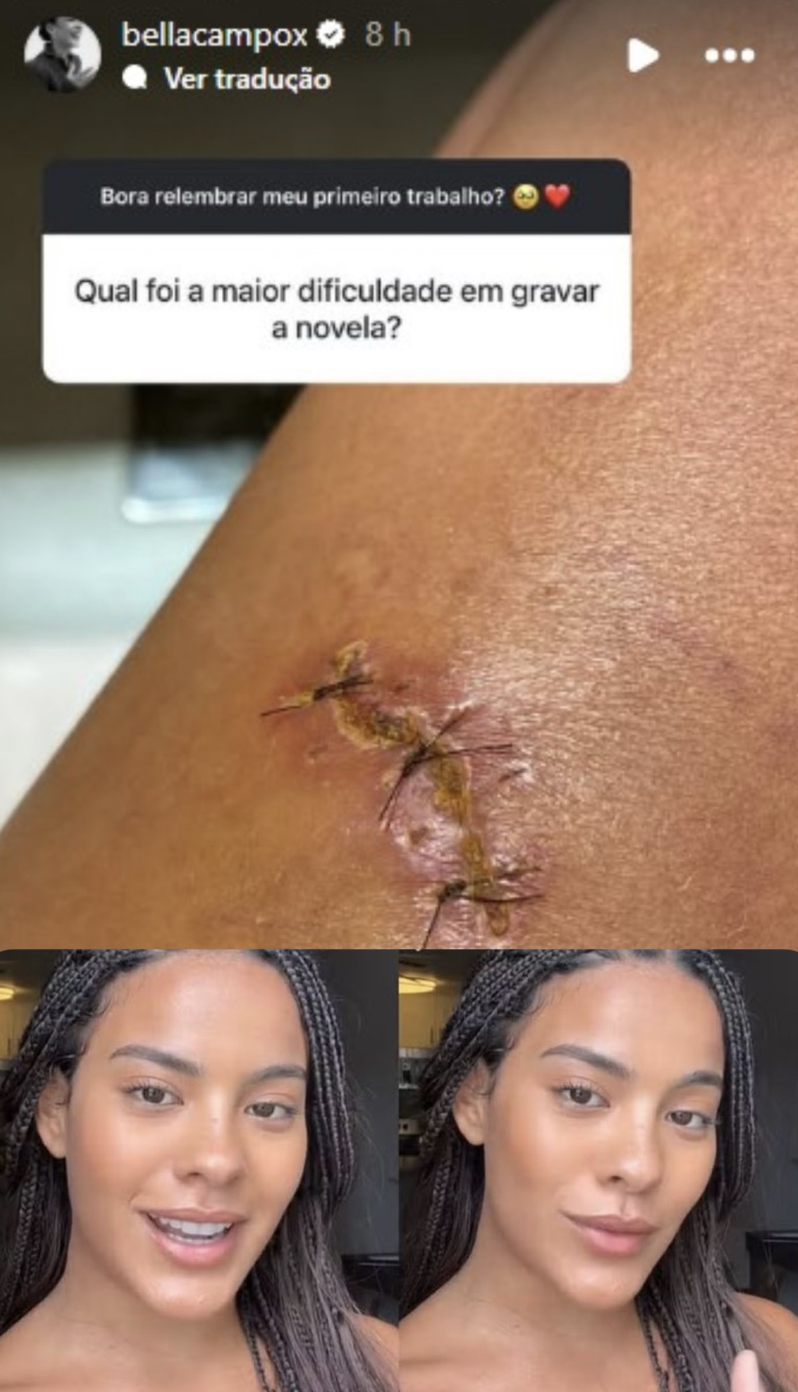 No caso de Bella, ela acabou sendo mordida por um jacaré em um dia de folga no local. O momento foi relembrado pela atriz nesta segunda-feira (17), durante uma interação com os seguidores nas redes sociais, ao responder “qual foi a maior dificuldade em gravar a novela”.