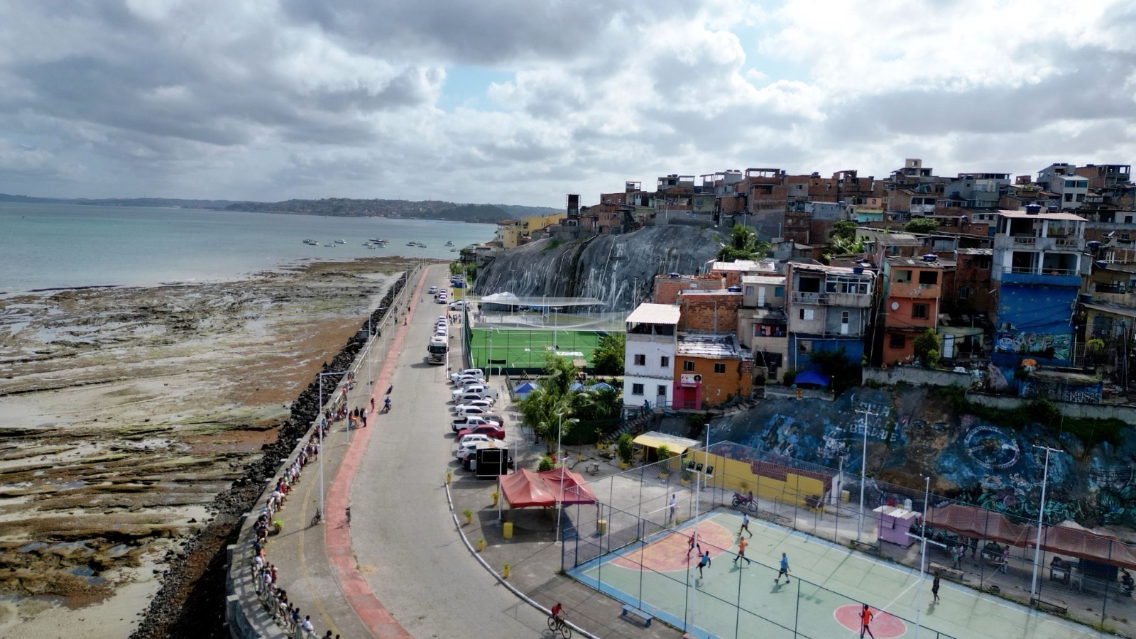 “Aqui antes era uma área de palafita, que se juntava ao esgoto da parte de cima do mirante. Realizamos um serviço de saneamento e esgotamento sanitário com a Embasa, a contenção das encostas e uma área de lazer para a comunidade. É um domingo de celebração da mudança de vida das pessoas que moram nessa região”, afirmou o governador Jerônimo Rodrigues durante a entrega da obra.