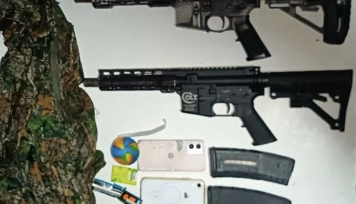 Houve revide e, segundo a PM, os suspeitos fugiram em direção a uma área de mata. Após varredura no local, foram encontrados: 02 fuzis calibre 5.56; munições do mesmo calibre; 02 carregadores; 2 aparelhos celulares; 01 capa de camuflagem para área de mata; e outros objetos.