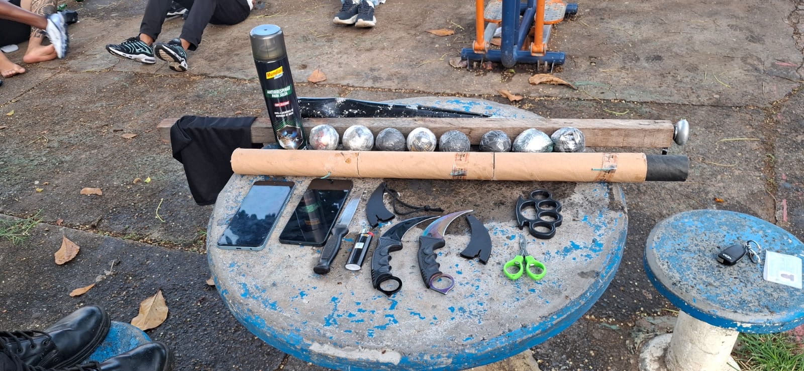 Após as buscas, foram apreendidos oito bombas caseiras, quatro facas, dois porretes, um taco de beisebol, uma soqueira, foguete e máscaras.
