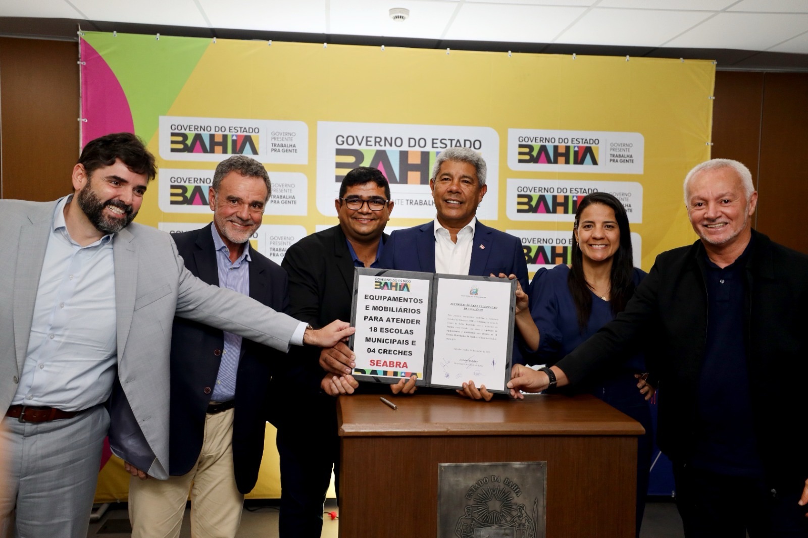 O governador Jerônimo Rodrigues assinou, nesta segunda-feira (20), convênios com quatro municípios baianos para fortalecer a rede municipal de ensino. O ato foi realizado no Centro de Operações e Inteligência da Segurança Pública (COI), em Salvador, com a presença da secretária da Educação do Estado, Rowenna Brito, de gestores municipais e autoridades. O investimento total é de mais de R$ 4 milhões.