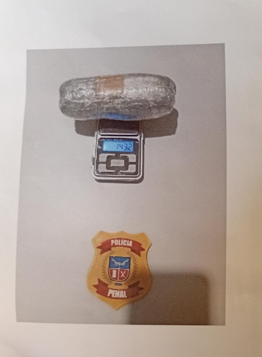 Em ato contínuo, na sala de revista, a visitante foi abordada pela Policial Penal da unidade e, após indagações, afirmou a posse e efetuou a retirada do invólucro. Em seguida, foi conduzida à segurança para verificação do material, sendo constatada a incidência de 88,3g de substância análoga à cannabis sativa (maconha) e 42,9g de substância análoga à cocaína.