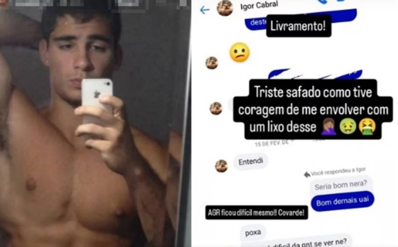 Em publicações no Instagram, ela compartilhou prints de conversas que teria trocado com o agressor, acompanhados de comentários contundentes. Em uma das legendas, criticou a postura pública de Cabral, afirmando que por trás da imagem conservadora havia uma conduta violenta e hipócrita. Em outra mensagem, demonstrou arrependimento: “Como tive coragem de me envolver com um lixo desse”.
