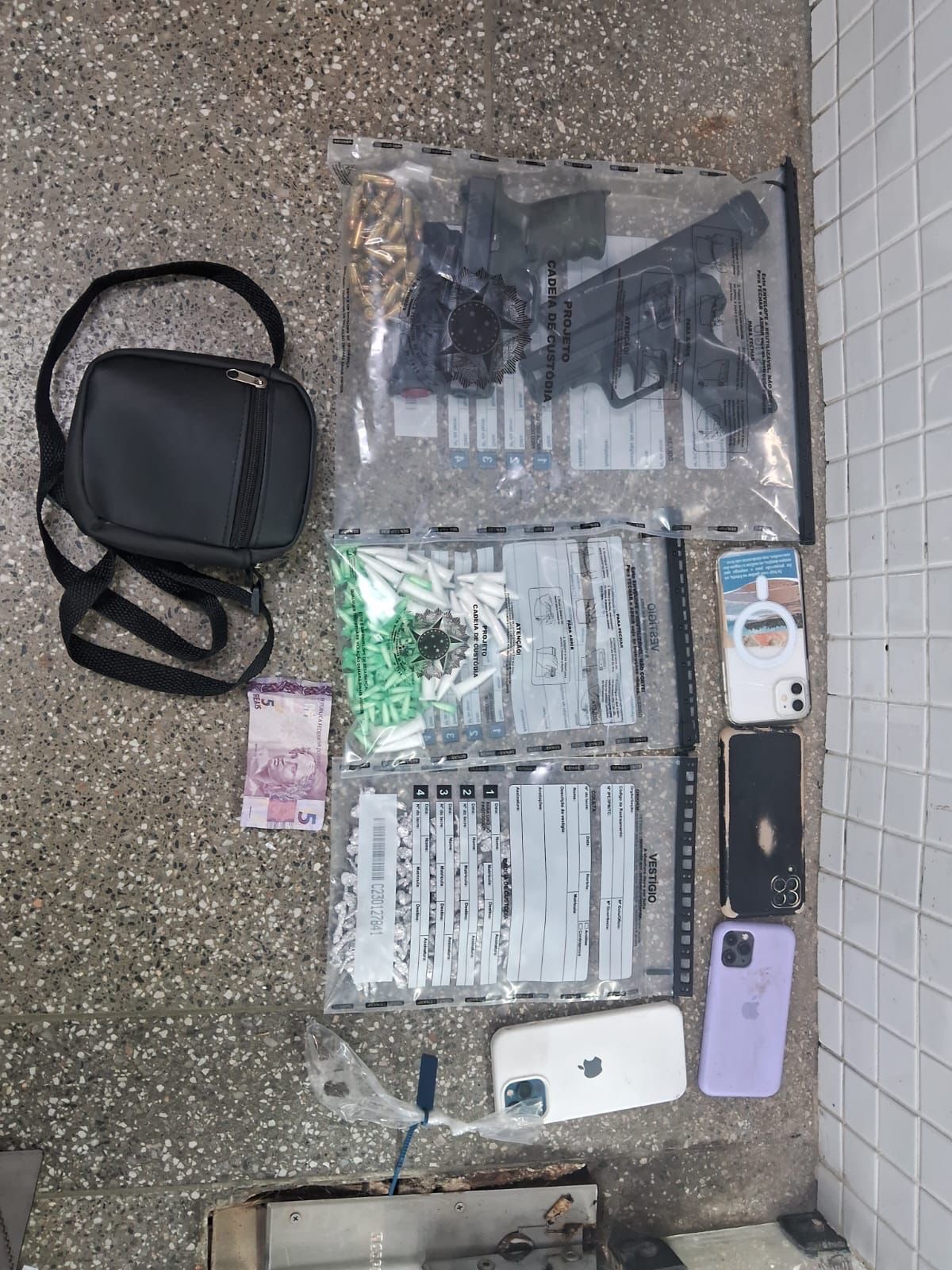 Com eles, foram apreendidos duas pistolas calibre 9mm, 50 munições, 188 pinos de cocaína, 165 pedras de crack e duas porções de maconha.