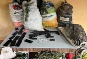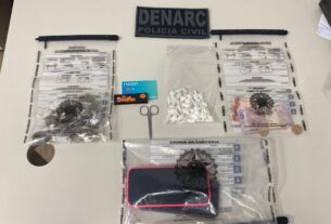 No local foram encontrados 5.000 microtubos de crack, dez porções de K9, seis porções de maconha, um coldre, um porta-carregador, uma balança de precisão e um aparelho celular.