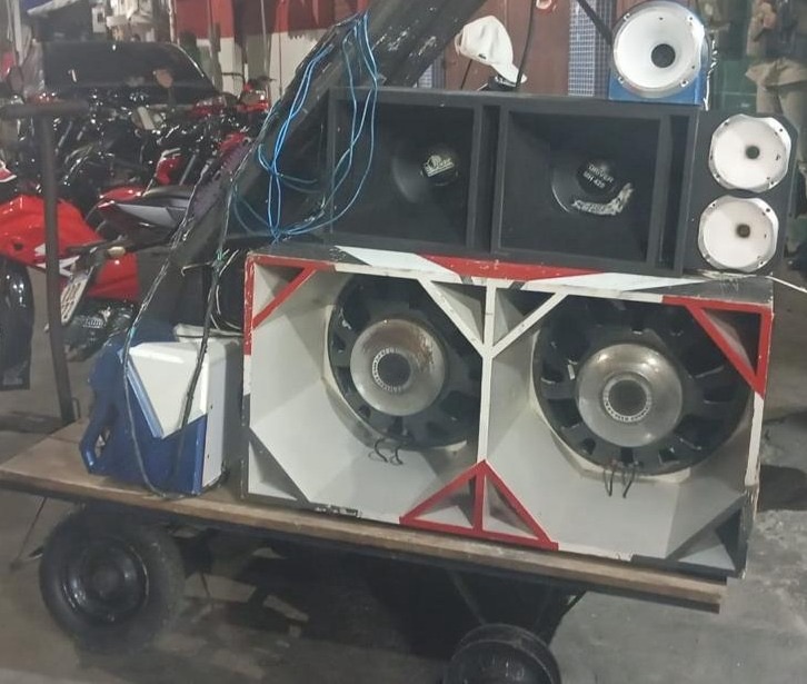 Os veículos e o aparelho de som foram removidos para o pátio do Detran.