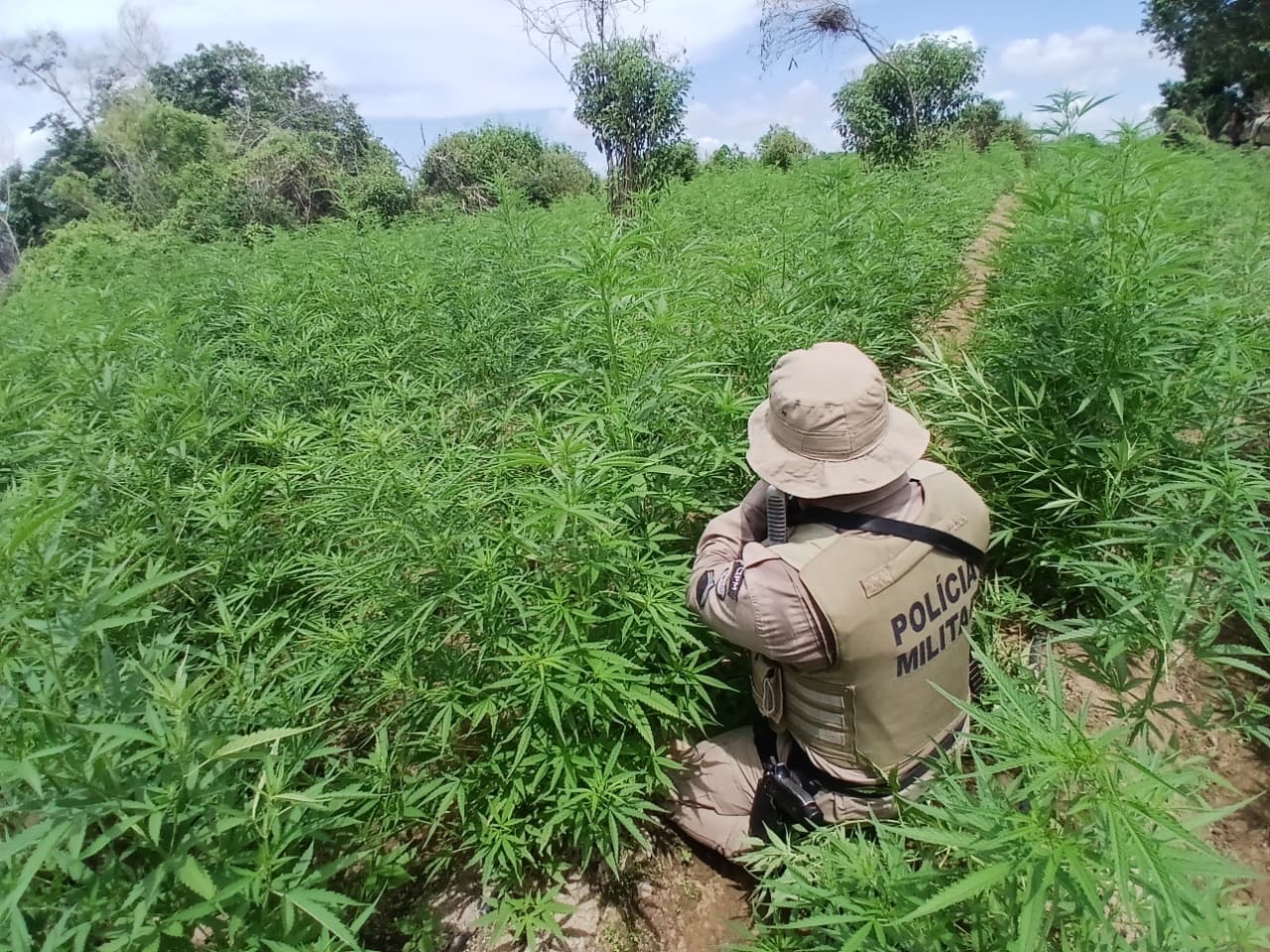 Nesta segunda-feira (16), policiais da 45ª CIPM erradicaram uma plantação de 45 mil pés de maconha em uma ilha próxima ao distrito de Ibó, nas proximidades de Abaré.