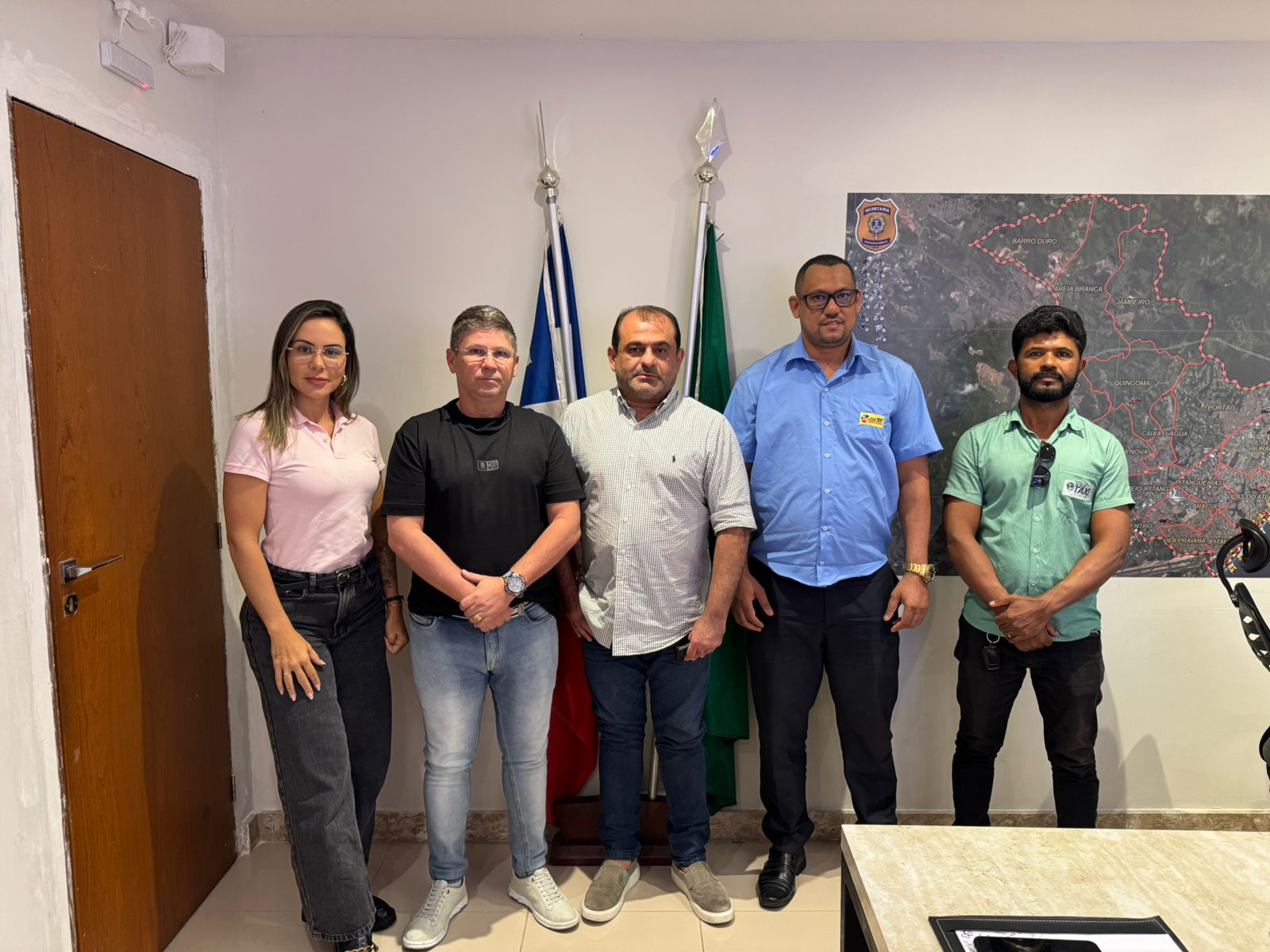 O encontro contou com a presença do secretário interino da SEMOB e titular da Secretaria de Segurança Pública Municipal, Glauber Moraes; do empresário Tuffi, proprietário do Armazém; da superintendente da SEMOB, Verônica Lemos; e de Henrique, representante da categoria dos taxistas.