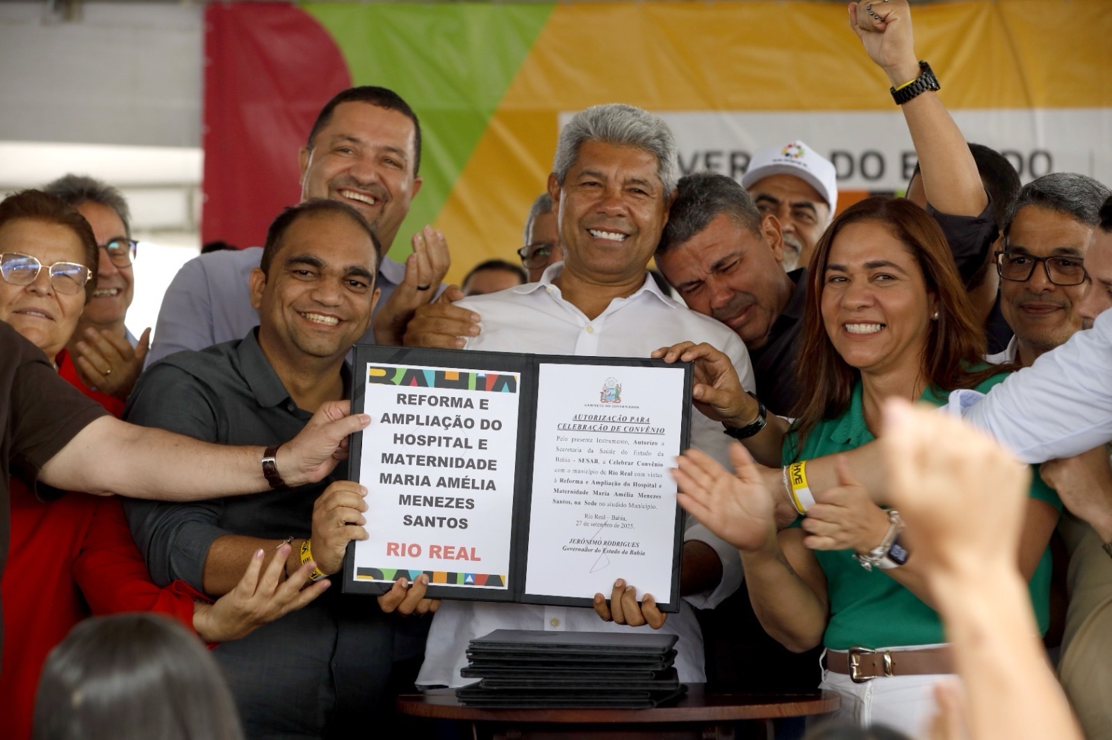 “Autorizei para Rio Real, uma licitação grandiosa de quase R$ 200 milhões, através da Embasa, para o esgotamento sanitário, que vai garantir uma cobertura de 90% do esgotamento aqui da sede, mais saúde e qualidade de vida”, anunciou Jerônimo Rodrigues.