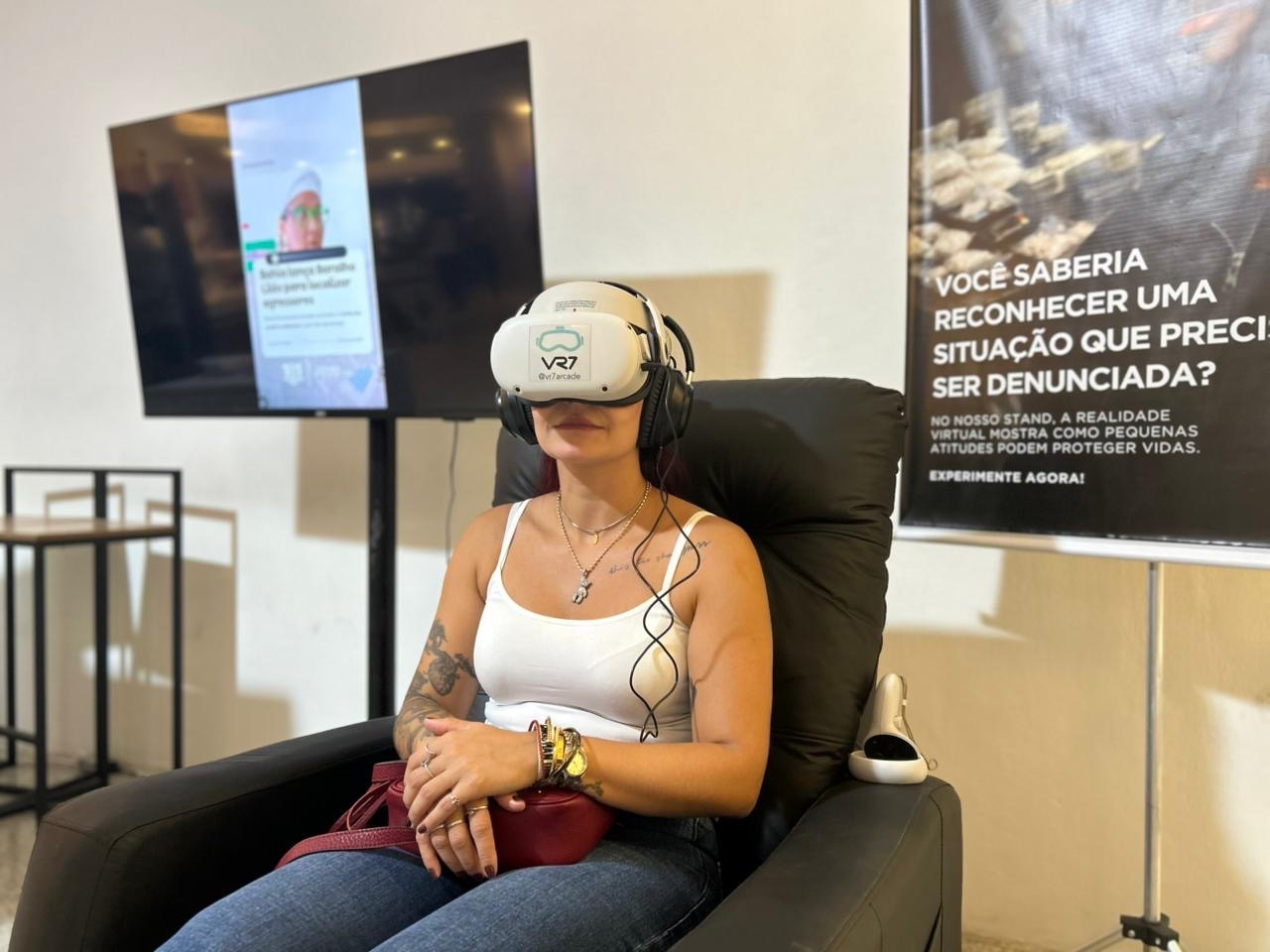 De acordo com a coordenadora do Disque Denúncia, tenente PM Sabrina Aiêxa, no stand o visitante é transportado para o momento em que um crime acontece e uma vítima auxilia a Polícia com informações.