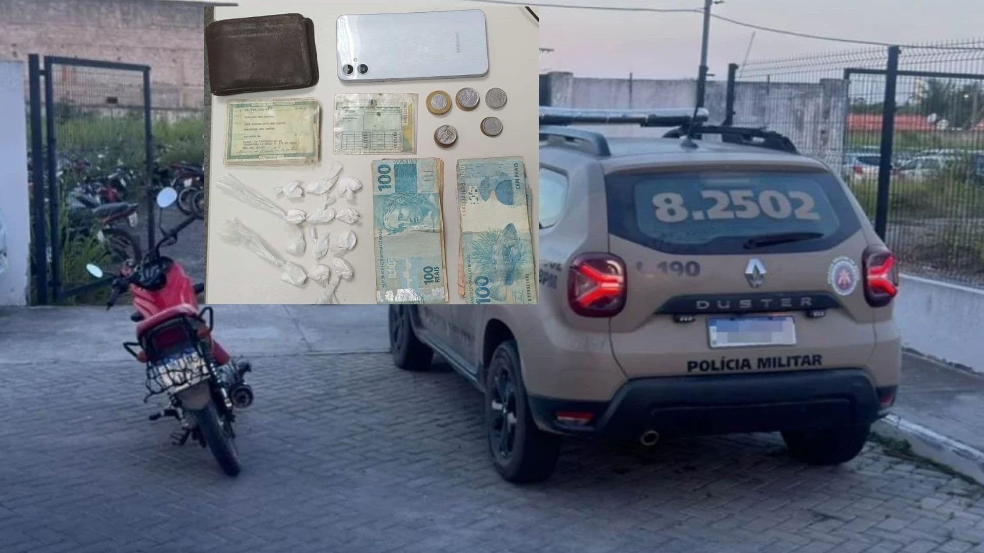 Durante a revista, os agentes localizaram diversos papelotes de uma substância branca, identificada como cocaína, com o motoqueiro, que confessou estar no local para realizar a venda. Ao perceber que seria detido, o homem tentou oferecer dinheiro aos policiais para evitar a prisão, mas a tentativa de corrupção só agravou a sua situação jurídica perante a guarnição.